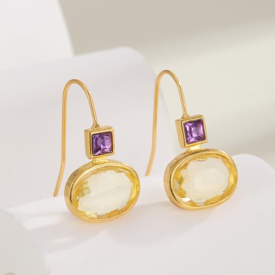 Charm Round Dangle Earrings Green Purple Stone Gold Color Earrings Women Jewelry
