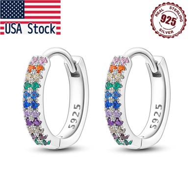 PANPOKI 925 Sterling Silver Colored Zircon Earrings Silver Hoop Earrings For Women Jewelry Original Party Gifts