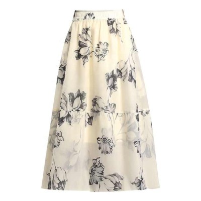 Floral Printing High Waist Long Skirt for Women Elegant Bodycon Skirts Casual Outwear Skirts