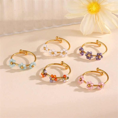 Popular Female Niche Design Multi-Color Stainless Steel Zircon Flower Ring Fashion Jewelry