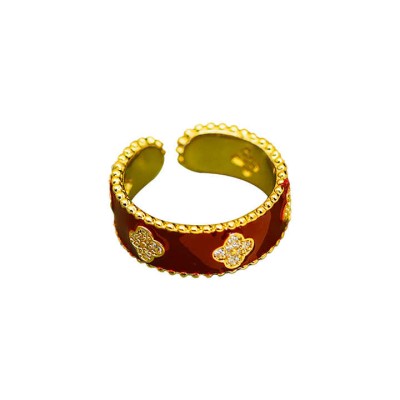 Fashion Four Leaf Clover Factory Wholesale Gold Brass 18k Gold Ring Ladies Custom Women Jewelry Rings Red and White Enamel Rings