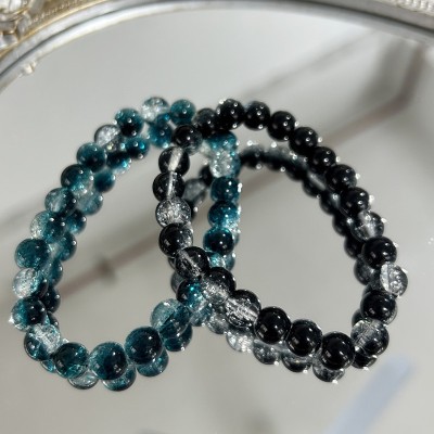 8MM Simple Round Beads Bracelet Elastic Stretch Handmade Cracked Bangle for Women Men Aesthetic Minimalist Pop Jewelry Gift