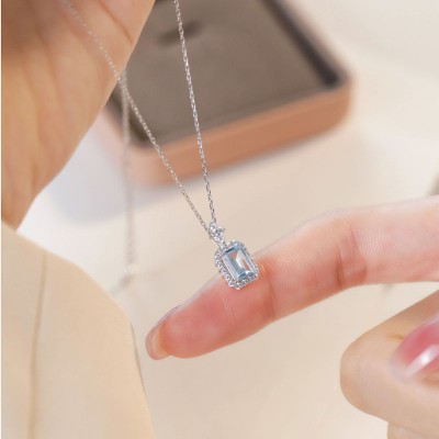 Sterling Silver Blue Zircon Necklace Chain For Women Fashion