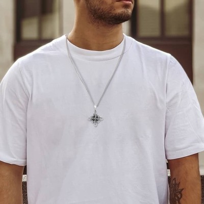 Compass Necklaces for Men, Layering Stacked Cuban Figar Chain Necklaces,