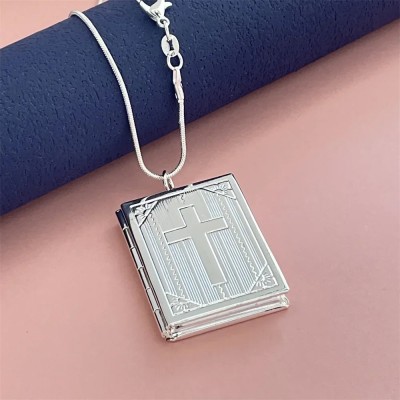 925 Silver Necklace Square Cross Photo Frame Pendant, Suitable For Women's Daily Wear