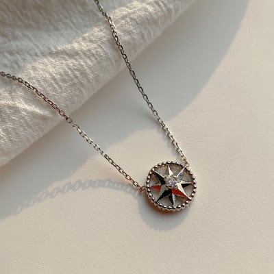 New Trendy Stainless Steel Star Round Zircon Pendent Necklace for Men