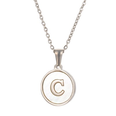 Initial Letter Necklace A-Z White Shell Round Alphabet Pendants Necklace Stainless Steel Letters Men Women Pendant Charm Jewelry