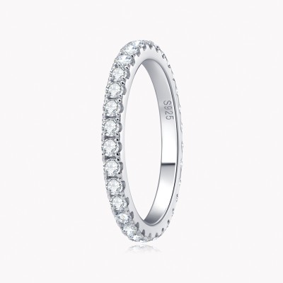 Round Moissanite Ring 925 Sterling Silver Eternity Bands Rings