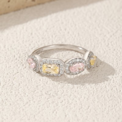Sweet Candy Color Geometric Zircon Eternity Bands Rings