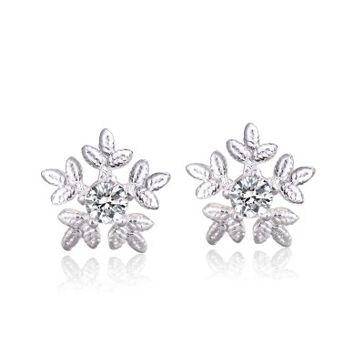 Silver Color Korean Fashion Small Snowflake Zircon Stud Earrings