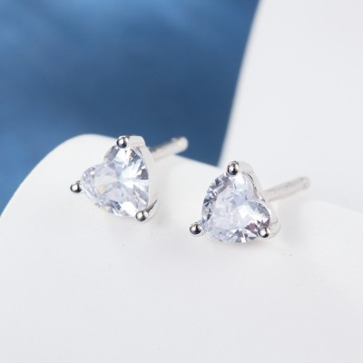 Sterling Silver 925 Romantic Shiny Love Heart Shape Stud Earrings