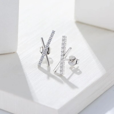 Sterling Silver Crystal Butterfly Screw Stud Earrings