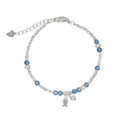 925 Sterling Silver Pearl Bead Fish Pendant Charm Bracelets