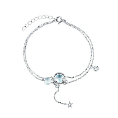 Sterling Silver Zircon Bracelets Women Female Sparkling Delicate Star Moon Heart Charms Chain Bracelet Jewelry