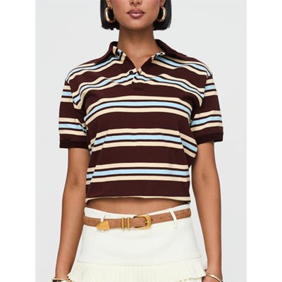 Women Summer Basic T-Shirt Casual Striped Print Lapel Short Sleeve Tops for Streetwear Aesthetic Grunge Clothes