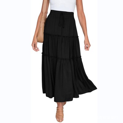 Skirts for Women Women’s Elastic High Waist Boho Maxi Skirt Ruffle