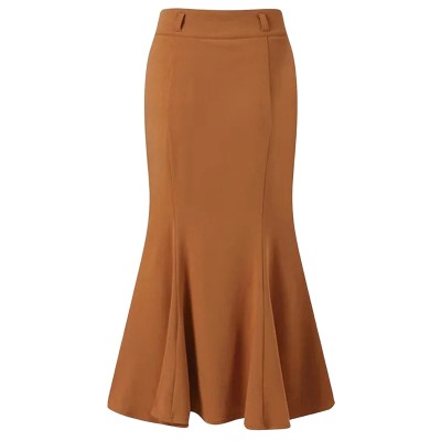 Women'S High Waist Elastic A Line Long Skirt Casual Party Long Skirt Solid Color High Waisted And Slim Looking Fishtail Skirt