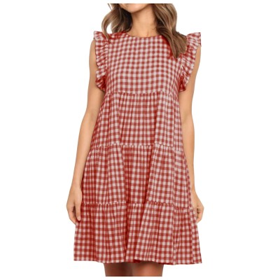 Summer Dresses For Women Robe Dress Sexy Sleeveless Plaid Layered Sundress Spaghetti Ruffled Loose Pleated Dresses Vestidos