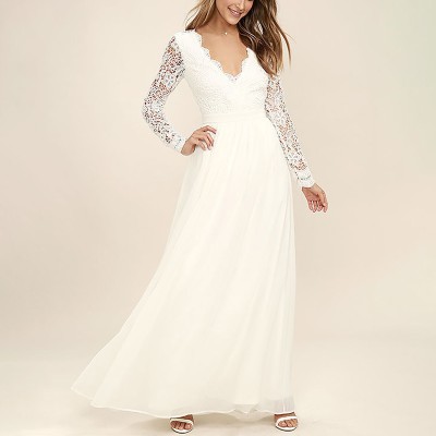 Womens Elegant Chiffon Prom Dresses A Line Long Sleeved Patchwork Lace Bridesmaid Evening Dress A Line Party Dresses For Women
