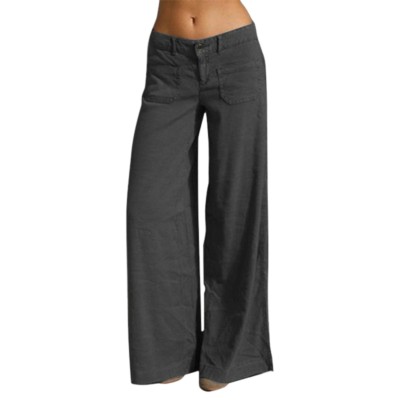 Women Pants with Pockets Solid Casual Wide Leg Pants