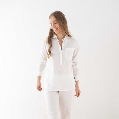 Natural Linen Shirt Woman White Long Sleeve Solid Color Casual Linen Women Shirt