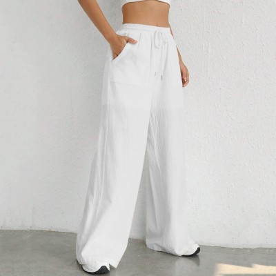 Women Drawstring Waist Wide Leg Pants High Waisted Wide Leg Pant Solid Color Fashion Casual Korean All Match Palazzo Pants