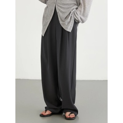 Casual High Waisted Female Pleated Trousers Drooping Wide Leg Long Pant