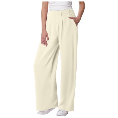 Pants with Pockets Solid Casual Wide Leg Pants for Women Elegant Office Lady Long Trousers Sweatpants