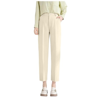 Women's Solid Color Suit Pants High-Waisted Loose Fit Drape Thin Formal Small Feet Trousers Casual Nine-Minute Cigarette Pants