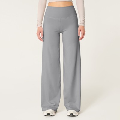 Womens Solid Color Straight Tube Loose Stretch Yoga Pants