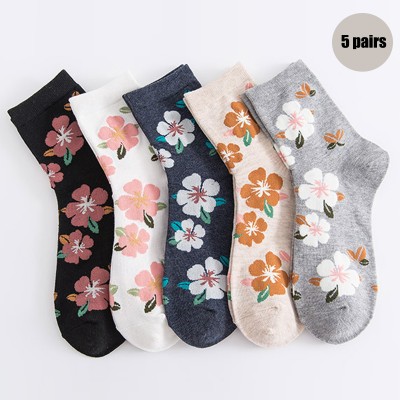 Mid-calf Socks Small Flowers Colour Blocking Japanese