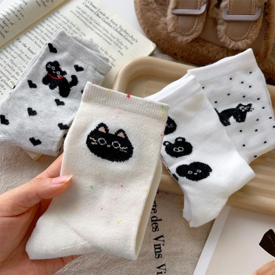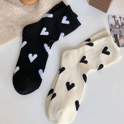 Cartoon Round Neck Socks Fashionable Black White Heart-Shaped Fun Soft Comfortable Cute Printed Casual Socks