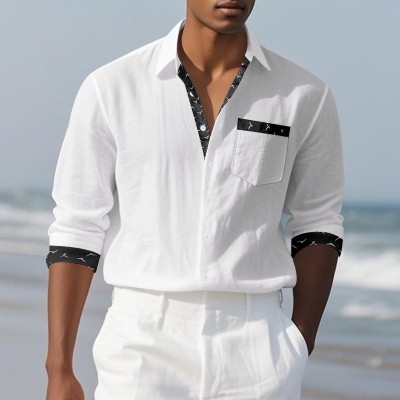 Men's fall outfits for daily wear Men's linen American loose Hawaiian casual long-sleeved button-down lapel shirt