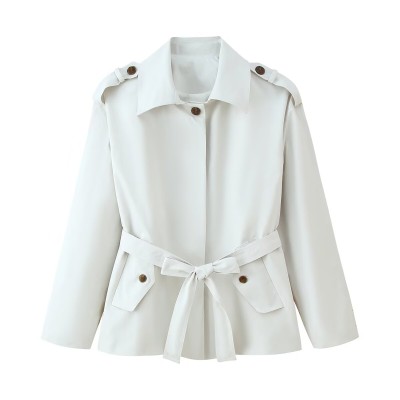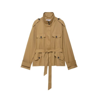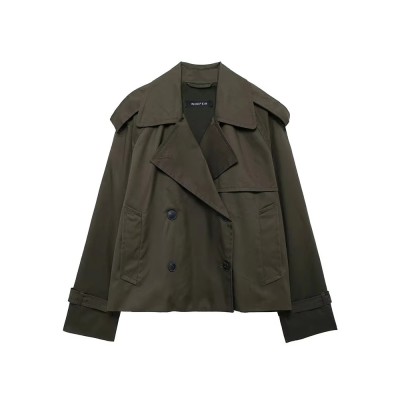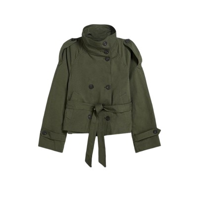 Short Lace-up Trench Coat Women's Autumn New Fashion Standing Collar Double Breasted Women's Jacket