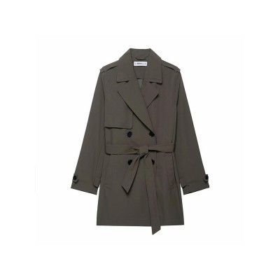Lapel Short Trench Coats Women Double Breasted Pockets Jackets