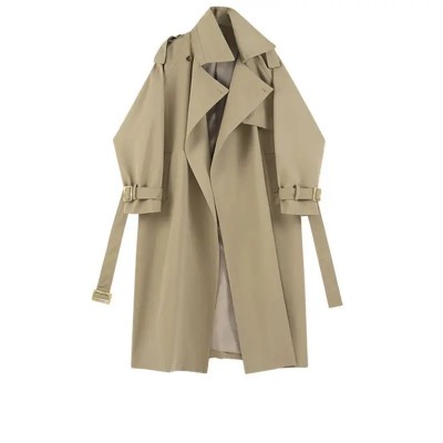 Fashion Trench Jackets Long Pattern Female Solid Color Coat Classic Lapel Long Sleeve with Belt Spring Autumn Casual