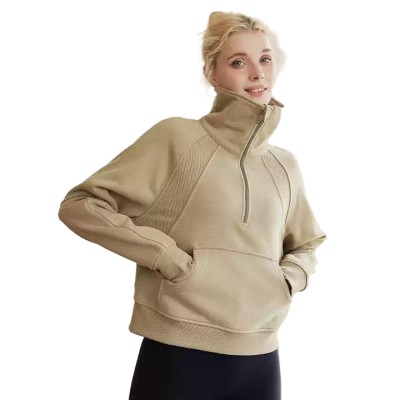 Women's Autumn Winter Casual Hoodie Breathable Active Tops Loose Sweatshirt with Half-Zipper and High Stand-Up Collar