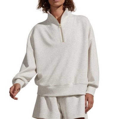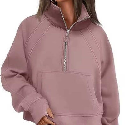 Women's Cotton Spandex Quarter Zipper Pullover Sweatshirt Loose Sport Hoodie