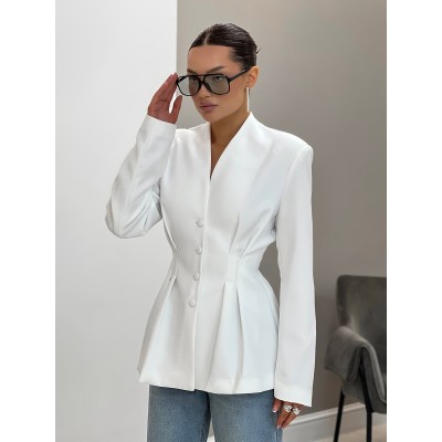 Elegant Waist Cinched V-neck Blazers Jacket Autumn and Winter Women Simple Solid Soft Office Commuting Leisure Thick Warm Jacket