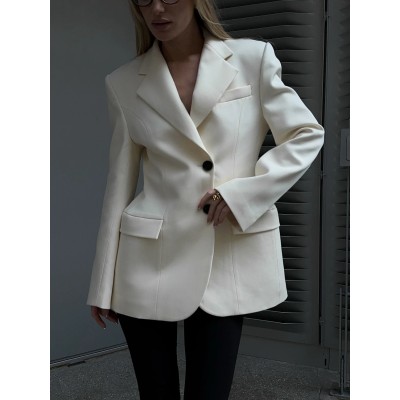 Women's Solid Color Long Sleeve Single Button Office Blazers Jacket
