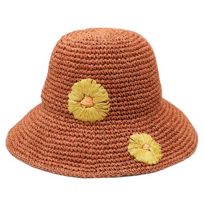 Raffia Bucket Straw Hat Ladies Casual Foldable Beach Sunshade Straw Bucket Hat Vacation Paper Straw Knitted Bucket Hat for Girls