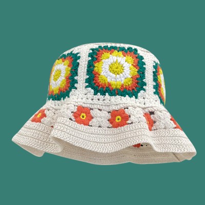 Colorful Hook flower hat Hat Women's Cute Handmade Plush Hat Knitted Fisherman Bucket Hats
