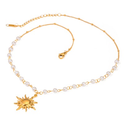 Sun Pendant Necklace Elegant Multi-Pearl Chain Romantic