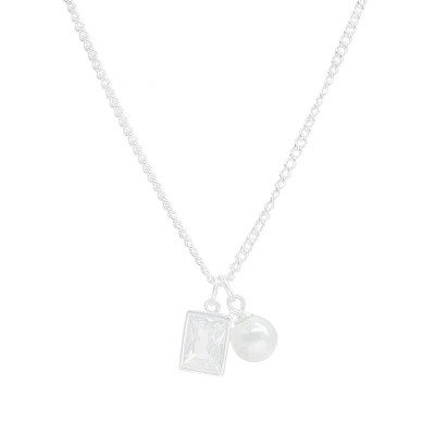 Sterling Silver Square Zircon Pearl Pendant Necklace