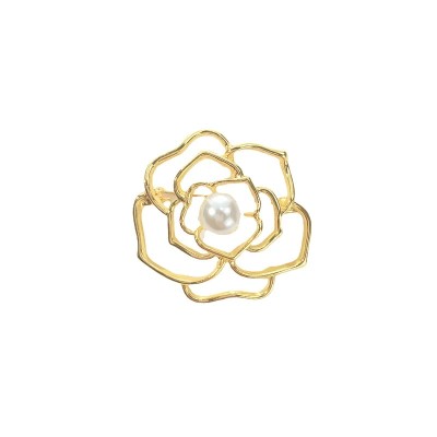 Pearl Accent Flower Brooch Pin: Dainty Floral Design with Faux Pearl Center, Yellow Golden Color Gift for Women