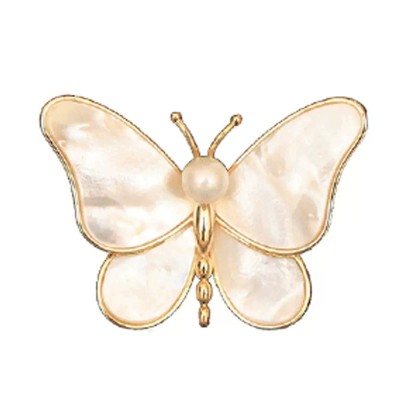 Elegant White Butterfly Brooch Pin , Yellow Alloy Faux Pearl Rhinestone