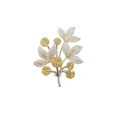 Two-color maple leaf brooch, golden highlight alloy metal autumn forest jewelry