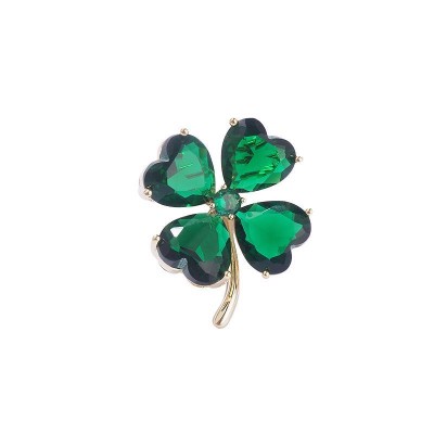 Shamrock Brooch Pin, Green Crystal Rhinestone Alloy Clover Accessory