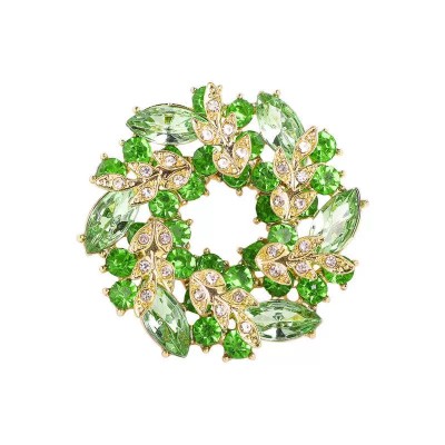 Green Crystal Brooch Pin, Alloy Rhinestone Leaf Lapel Pin