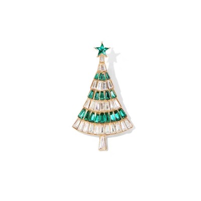 Christmas Tree Brooch Pin, Green Crystal Rhinestone Alloy